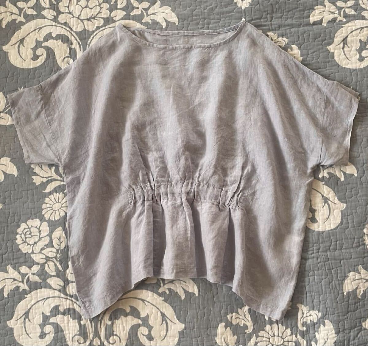 > YAMMA 麻100% ブラウス トップス フレンチスリーブ 薄紫 肩落ち ワイド シャーリング プルオーバー リネン ヤンマ 日本製