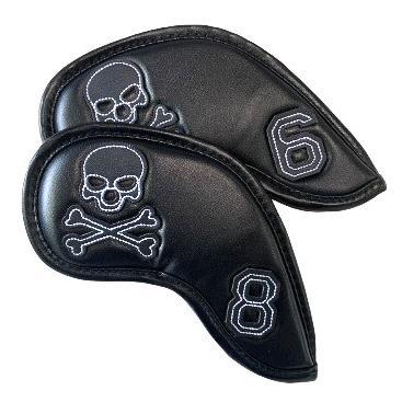 > ゴルフヘッドカバー アイアンカバー アイアン用 刺繍入り 10点セット 4−9番 P、A、S、X番 番手付 スカル 黒