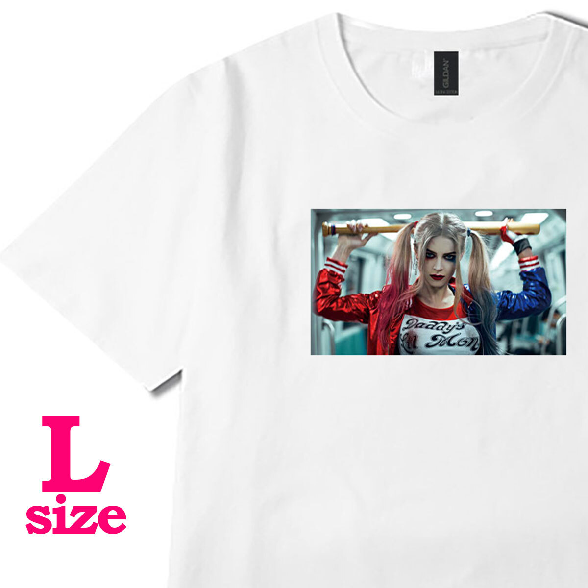 - フォトプリント ハーレイ・クイン 柄 Tシャツ スーサイド・スクワッド 映画Tシャツ カジュアル 半袖 6.0oz コットン100% ユニセックス L