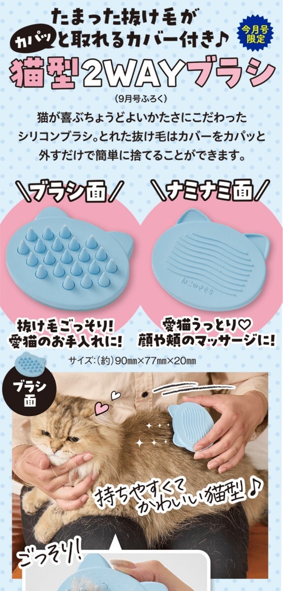 - 猫型2wayブラシ 猫のたまった抜け毛がカパッと取れるカバー付き。 ねこのきもち2025.9付録