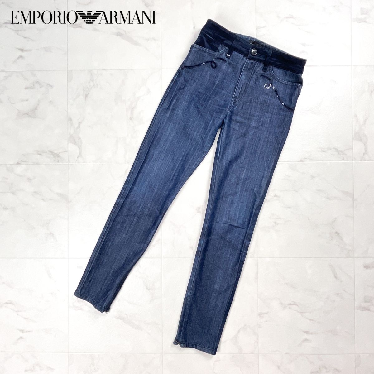- EMPORIO ARMANI エンポリオアルマーニ NEW SABRINA 裾ジップデニムスキニーパンツ ボトムス レディース ネイビー 紺 サイズ26*GD702