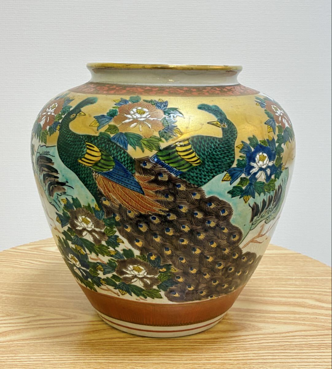 - ☆九谷焼 色絵花瓶 花器 花瓶 花入 壺 飾壷 古美術品 現状品⑤☆