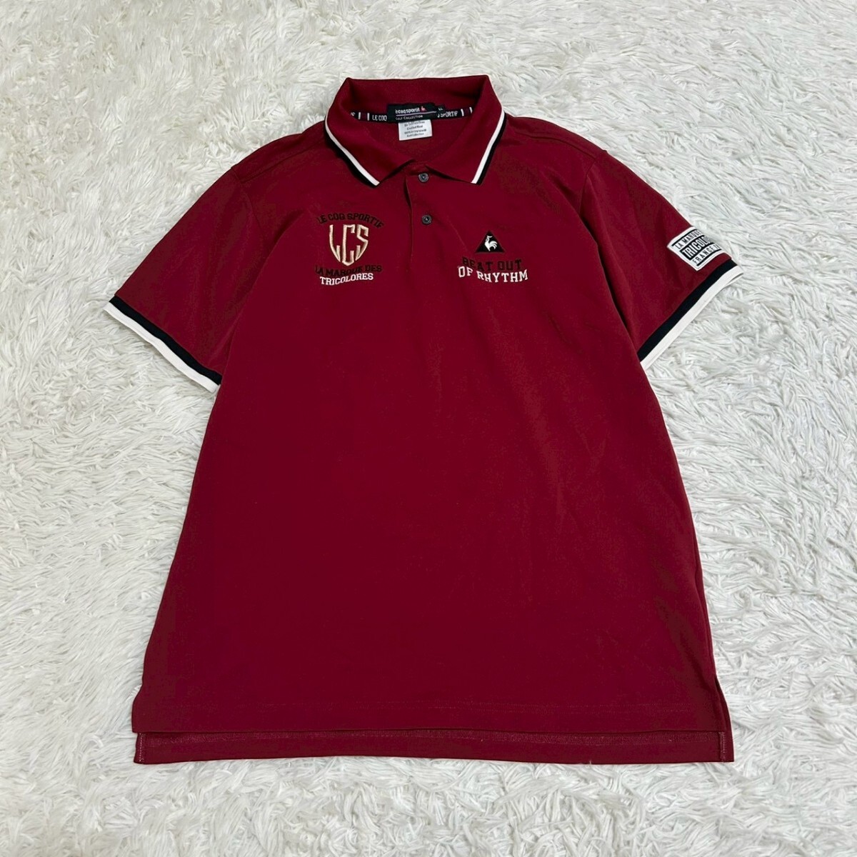> le coq sportif ルコックスポルティフ 半袖シャツ 刺繍 カジュアル ゴルフウェア ポロシャツ レッド サイズLL