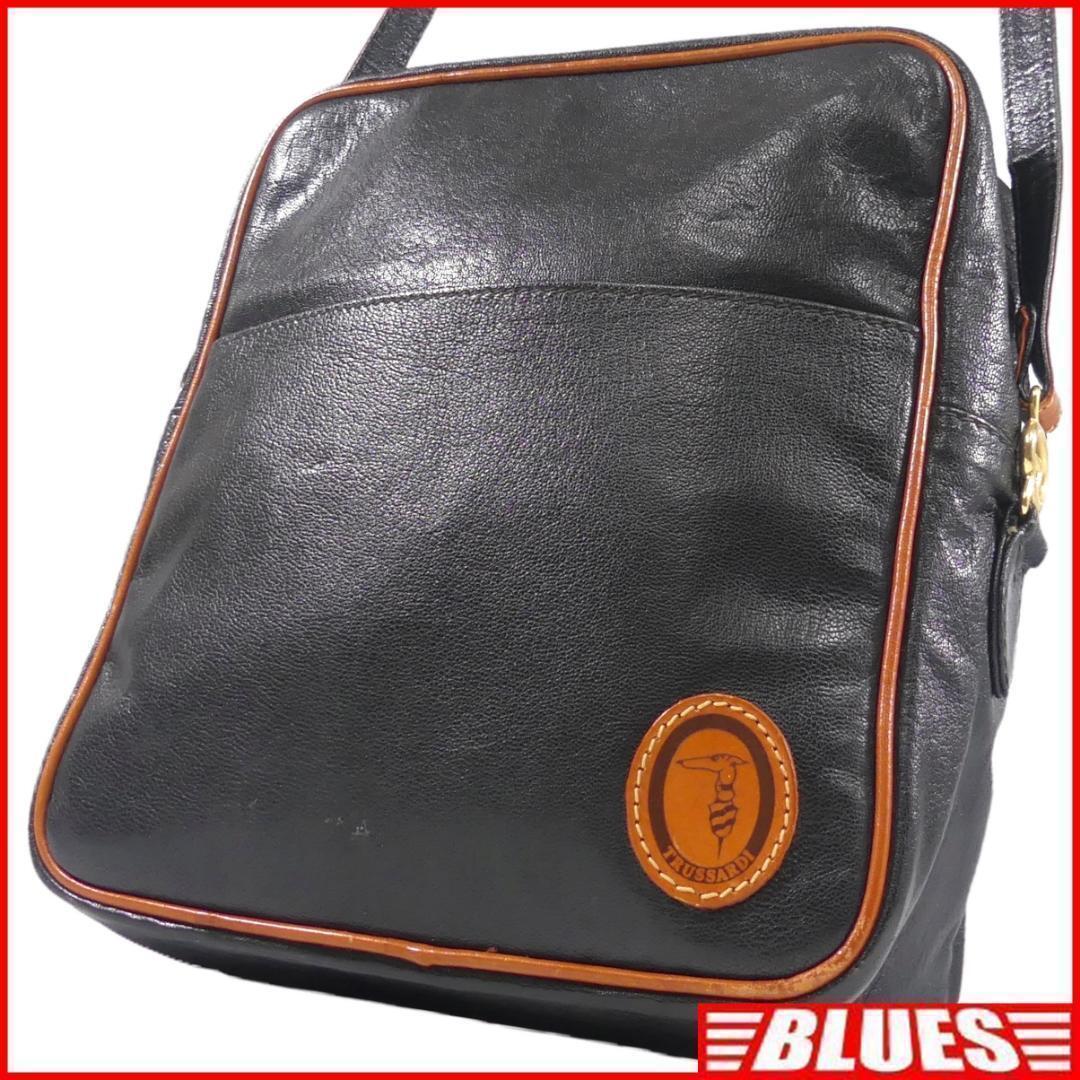 - 即決★イタリア製 TRUSSARDI★オールレザーショルダーバッグ トラサルディ メンズ レディース 黒 本革 肩掛けカバン 斜め掛け 本皮