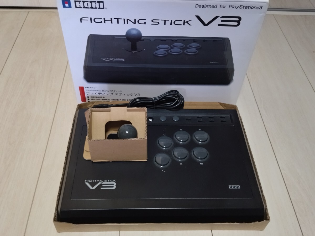 > 即決PS3 HORIファイティングスティックV3 動作確認済 アーケードコントローラー アケコン PSボタン 連射/スティック切替 ホリ