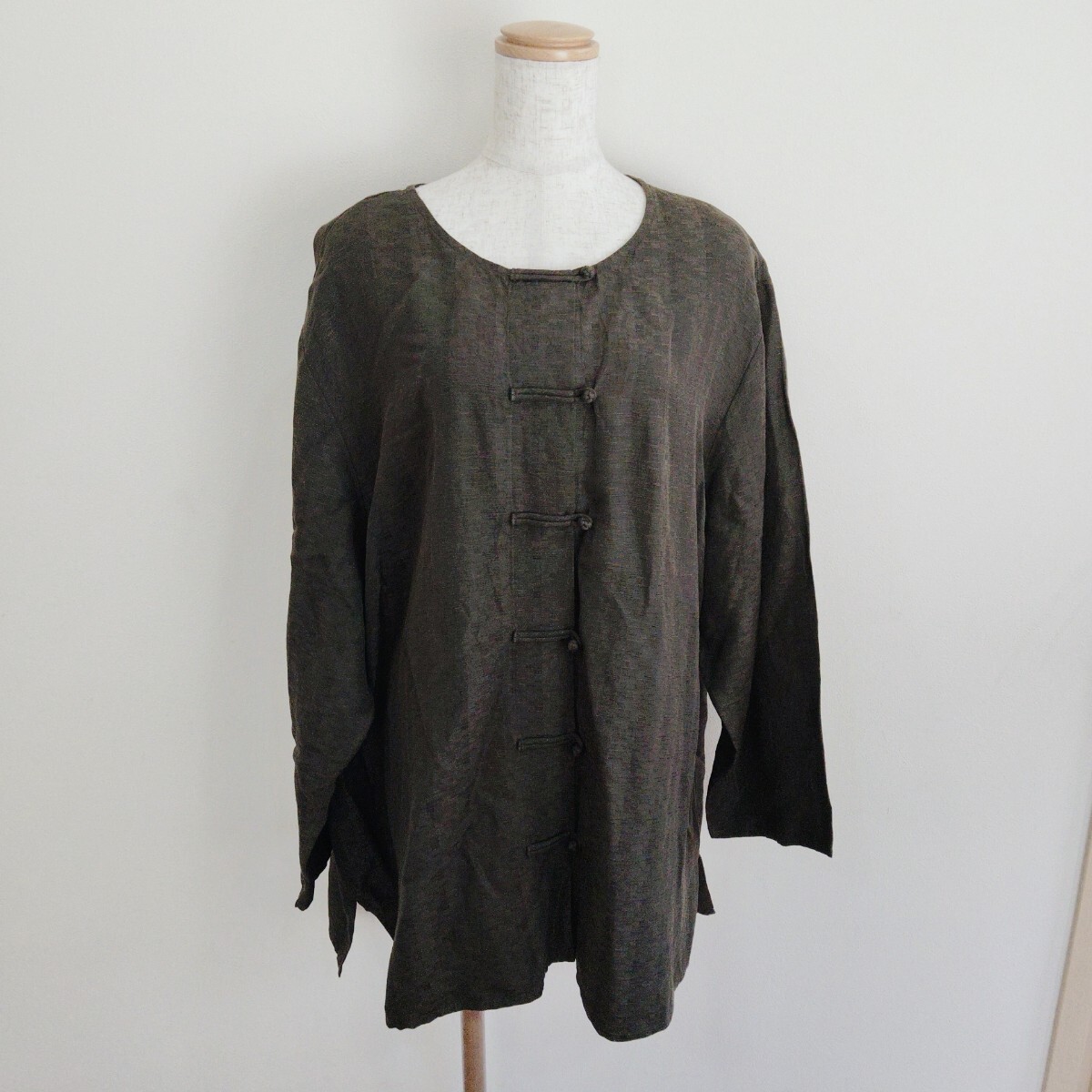 - 0829/3X/EILEENFISHER レディース 長袖ブラウス チャイナ服 カーキ