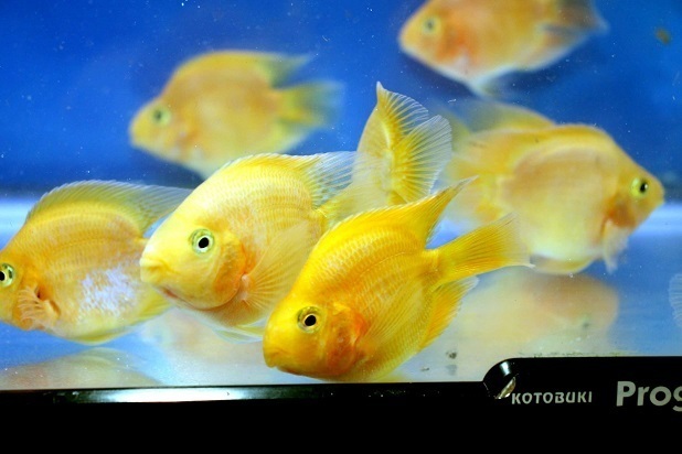 - 過背金に最適!激レアのオレンジではなくイエローパッロト!ふなっしーカラーで人気!待望のMサイズ!アロワナの目垂れ防止に!!8cm±