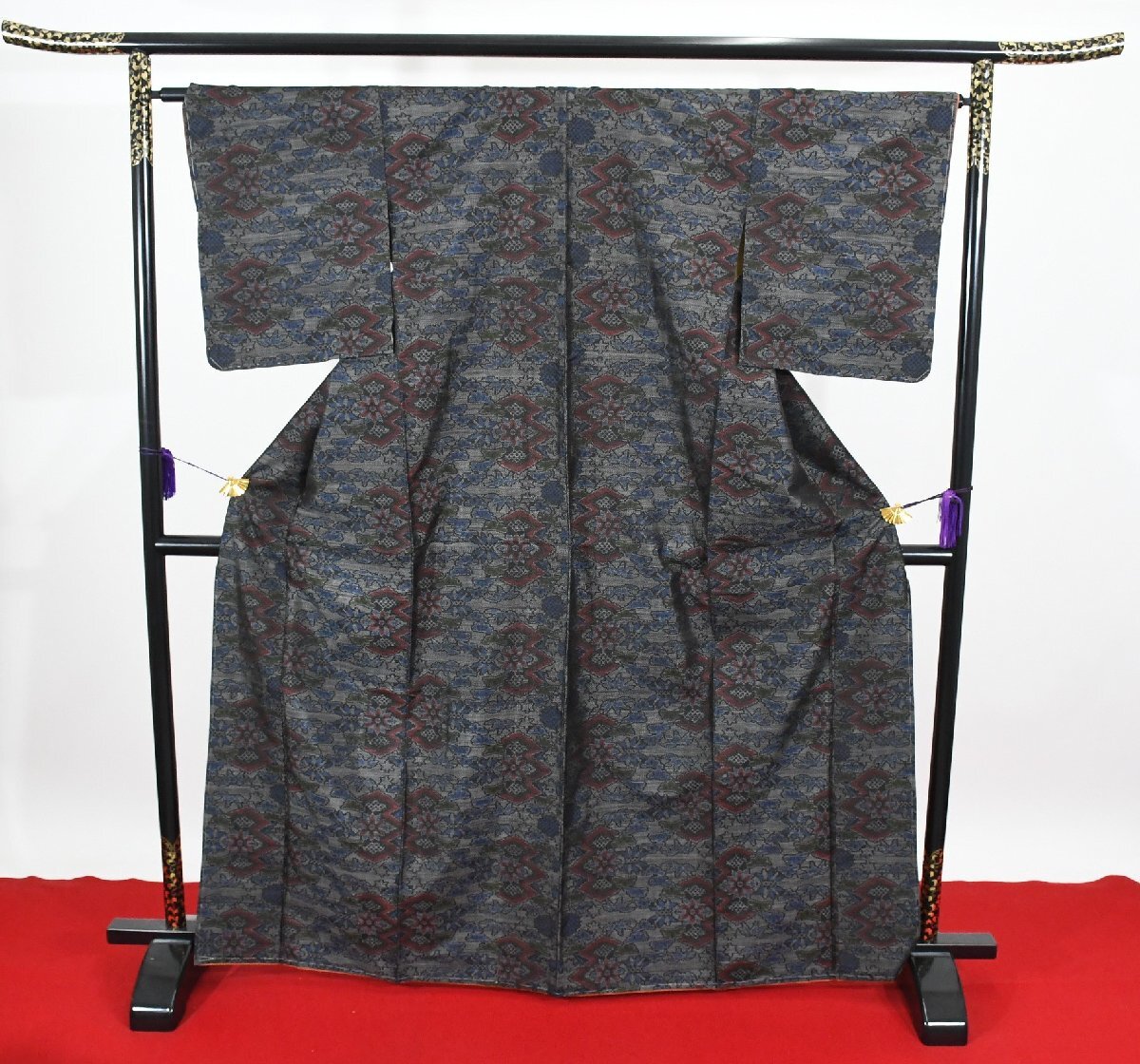 - 大島紬 和更紗 笹 身丈160cm 裄丈65cm ★着物 pb-3367 桜庭呉服店
