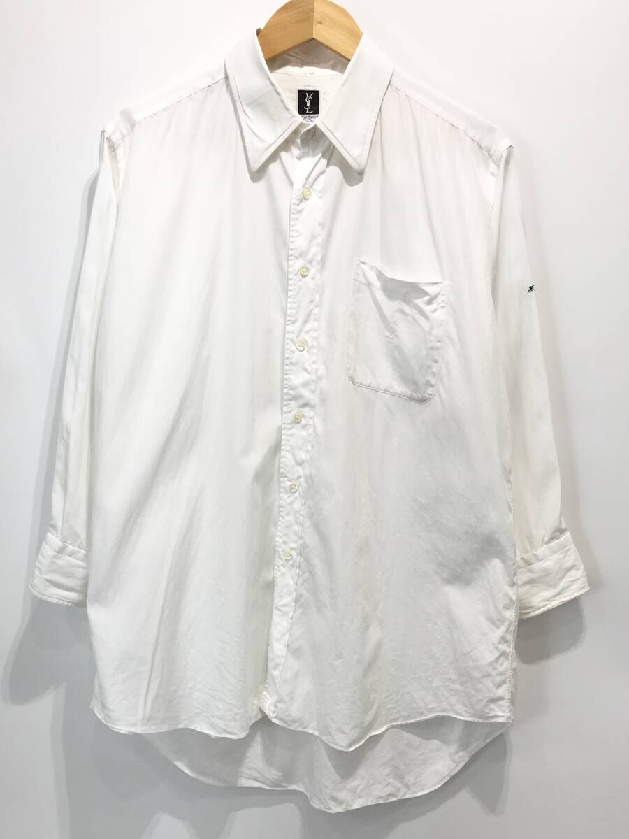 > Yves Saint Laurent Yシャツ ワイシャツ 胸ポケット付き ロゴ刺繍 ストライプ C-TK 2508 イヴサンローラン 古着 ヴィンテージ■0829I