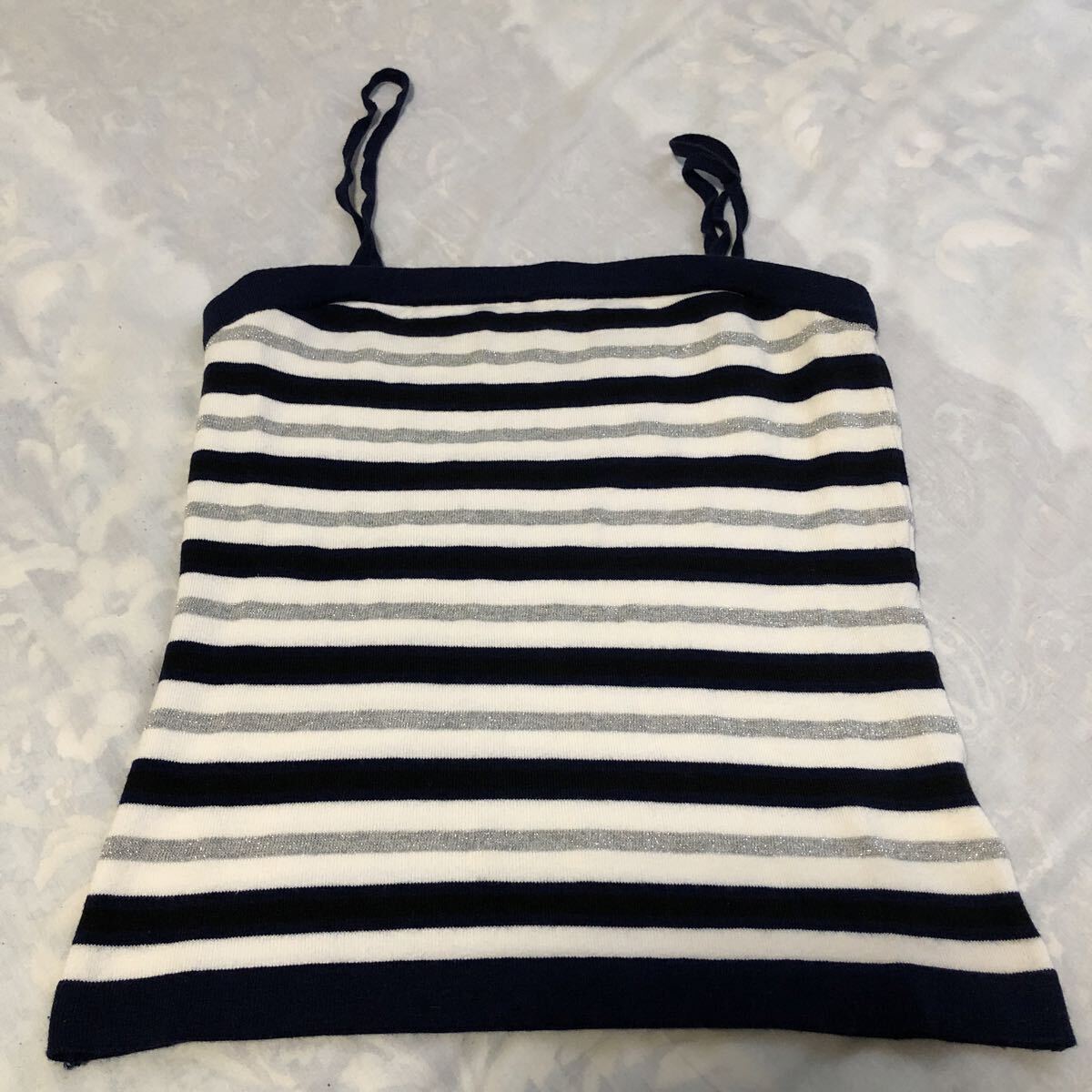 > 【古着】セシルマクビー キャミソール(38) ホワイト×シルバー×ネイビー