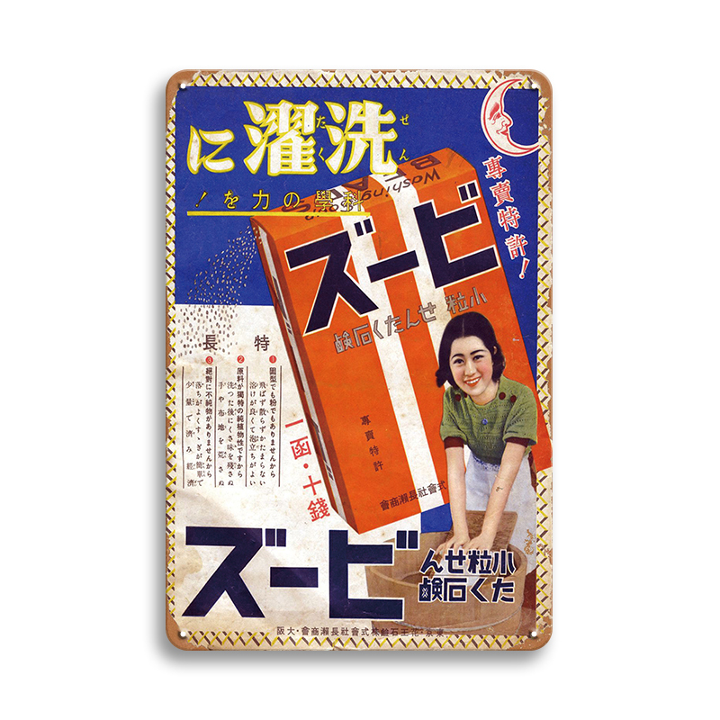 - 日本の看板シリーズ / 大型60cm / 洗濯にビーズ 昭和レトロ看板 / メタル看板 / 新品 / 全国送料無料・匿名配送