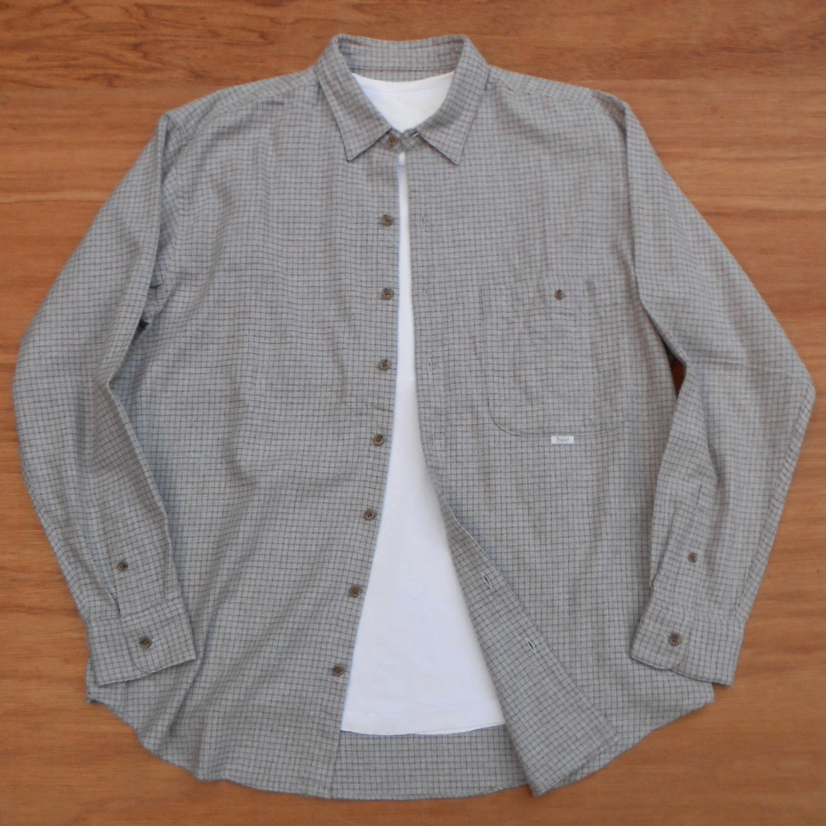 - 良好 Papas パパス 長袖 フランネルシャツ M 綿 コットン 格子織柄 チェック 霜降り灰x茶 ミックスグレーxブラウン 日本製 ボタンダウン