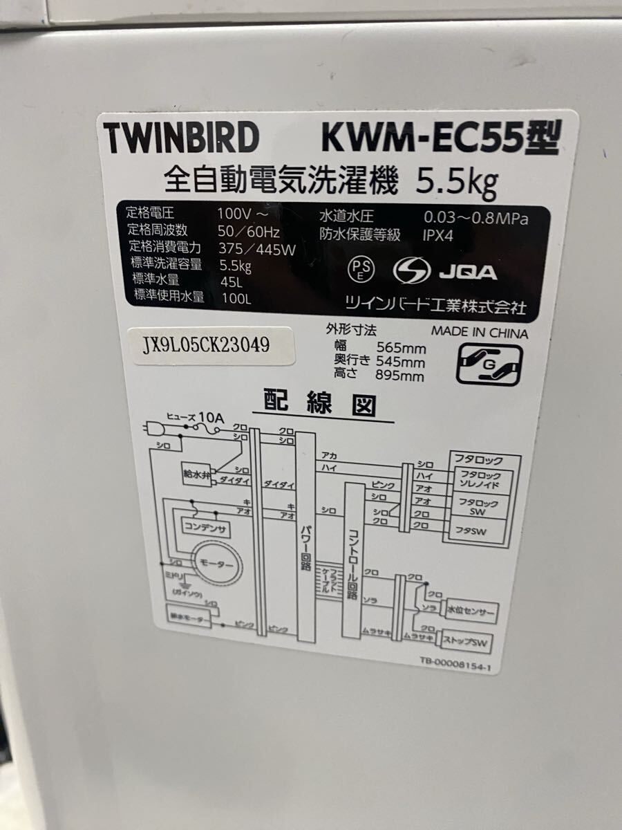 - TWINBIRD ツインバード 全自動電気洗濯機 KWM-EC55 5.5kg 2019年製