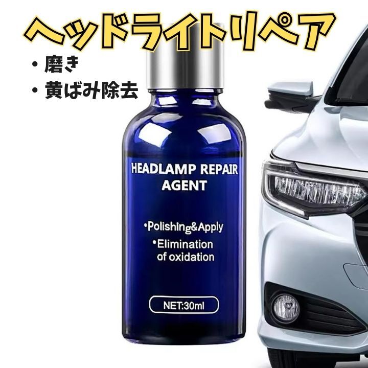 - 経年劣化によるヘッドライトの黄ばみや曇りを修復し、DIYで透明度を回復できるトップコート付き修復液30ml保護効果もプラス!