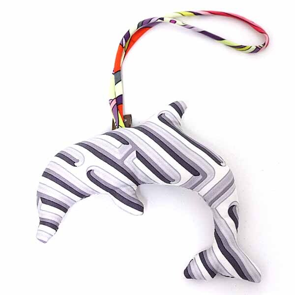 - エルメス HERMES プティアッシュ チャーム イルカ ドルフィン シルク グレー マルチカラー 【中古】Sランク