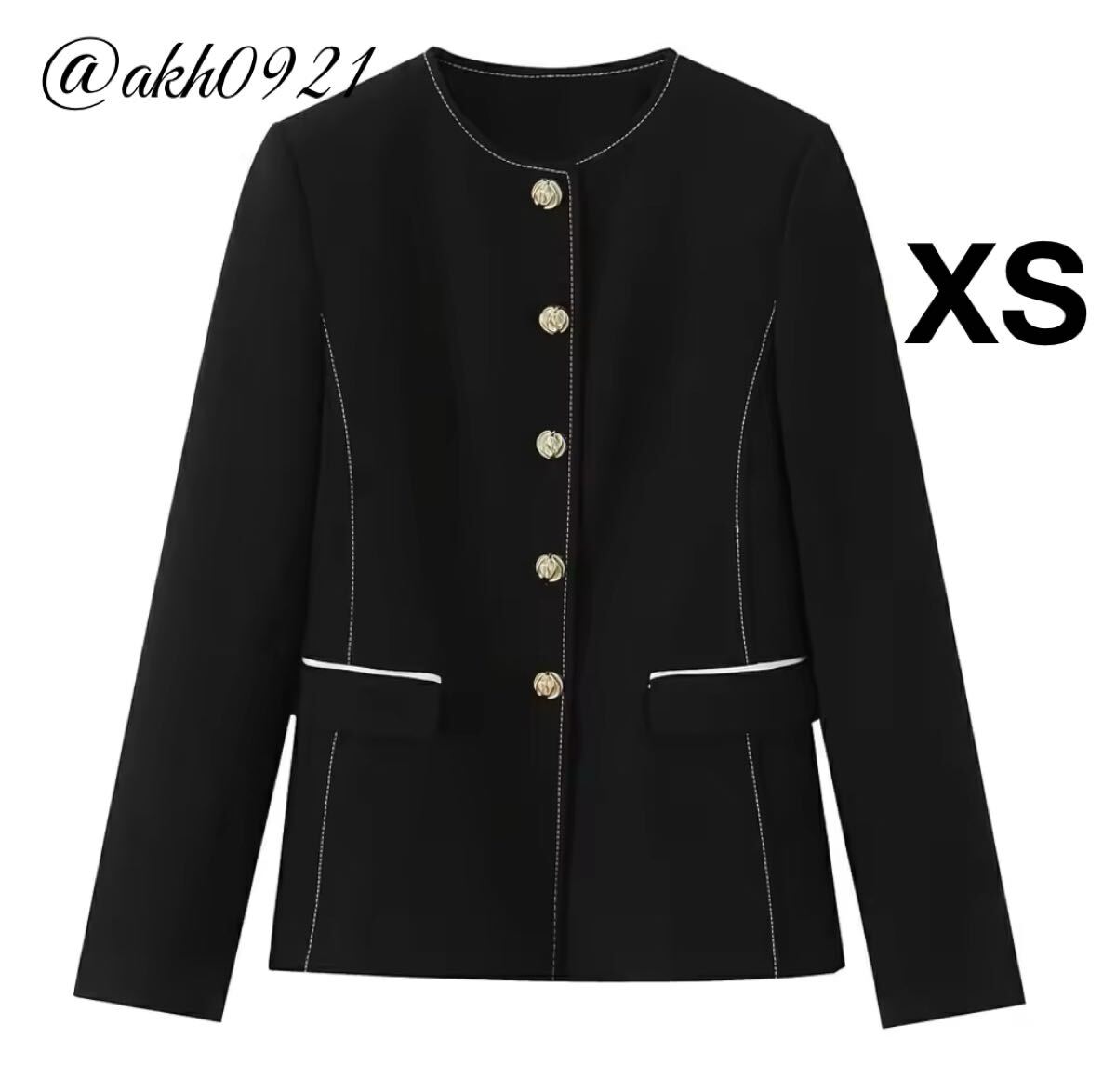 - 新品未使用★2025 A/W 秋新作★vintage ヴィンテージ レトロ ノーカラージャケット アウター XSサイズ レディース★ZARA 好きな方に