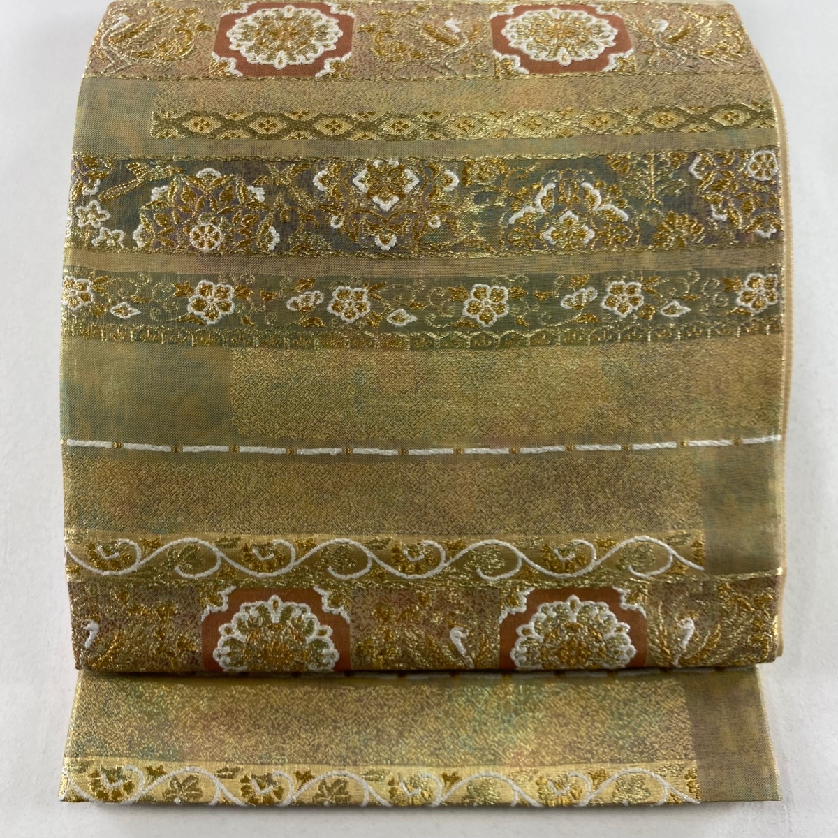 > 袋帯 美品 秀品 華文 鳳凰 金糸 箔 金色 六通 正絹 【中古】