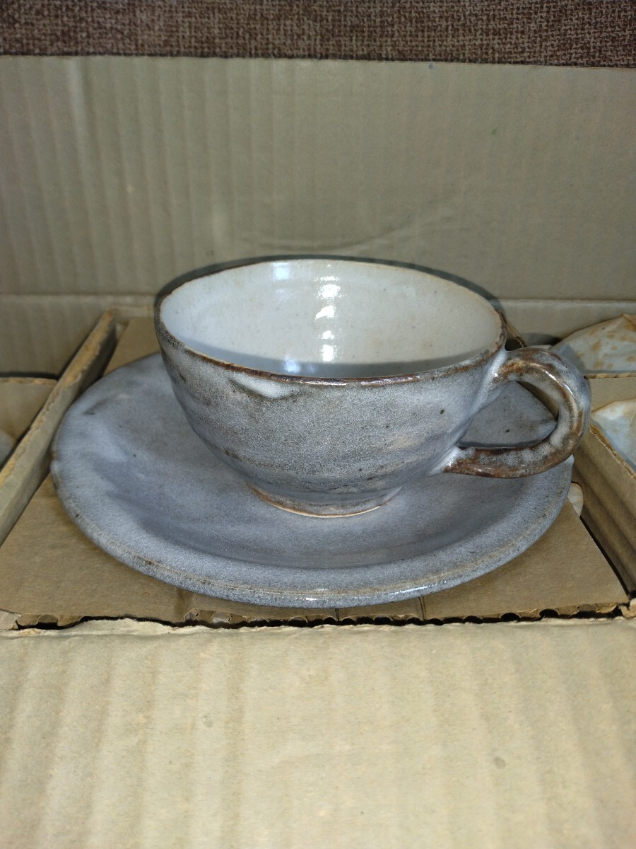 > K346【新品/長期保管】 志野焼 和陶窯 カップ& ソーサー 茶碗 6客揃 昭和レトロ