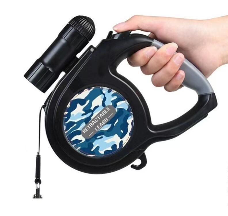 - 新入荷上質8m伸縮リードライト付迷彩照明 LED明るい 夜間散歩小型犬 中型犬 大型犬 自動巻き 巻取り テープ ペットリード ロング 安全対策