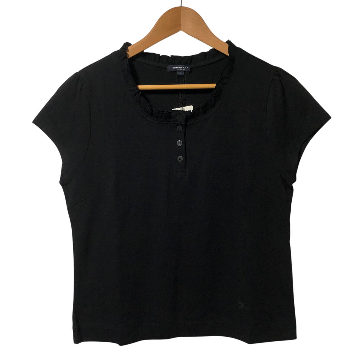 > BURBERRY バーバリー フリル カットソー 半袖 Tシャツ 4 黒 ホース刺繍 ストレッチ レディース A4