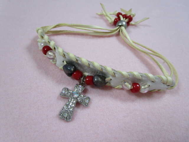 - ペットグッズ 首回り22~30㎝ クロスチャーム チョーカー アイボリー 中古