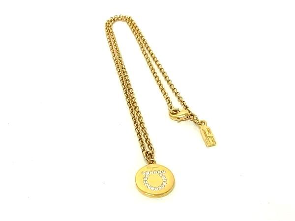 - 1円 ■美品■ Salvatore Ferragamo フェラガモ ガンチーニ ラインストーン ネックレス ペンダント アクセサリー ゴールド系 BQ0785