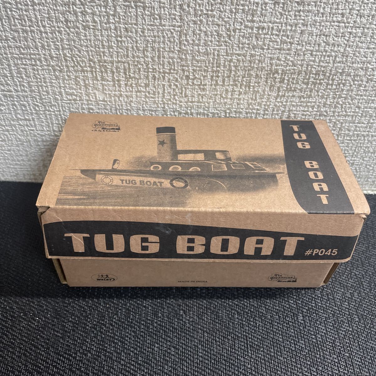 > 輸入品/TUG BOAT/ブリキ/蒸気船/ポンポン蒸気船/MADE IN INDIA/インド製/Tin Treasures/ろうそく/船