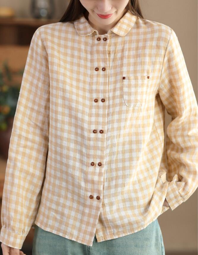 > 新入荷*カジュアル 復古風 シャツ レディース トップス 長袖 ブラウス チェック柄 長袖シャツ 上品 きれいめ 通勤 ビジネス * 黄