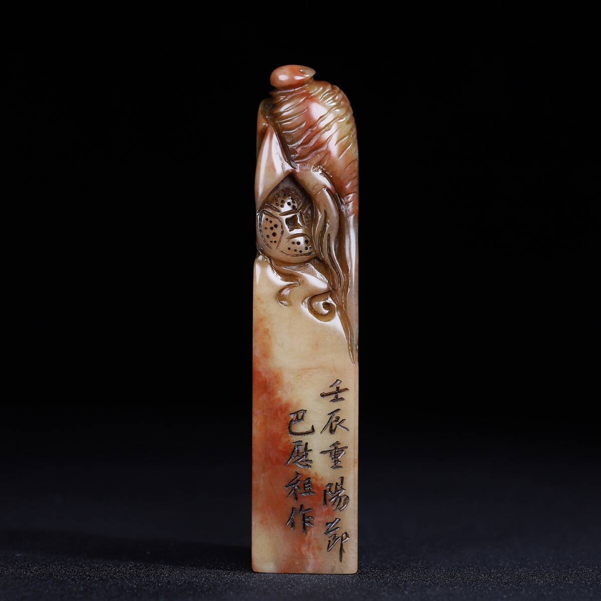- ▽鴻▽ 寿山石 芙蓉石 細密彫 福祿人生印章 印鑒 文房具 書道品 古賞物 古董品 時代物 稀少珍品 中国古玩 中国古美術