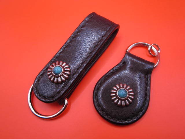 - 栃木レザー「ブラック キーホルダー キーリング、チャーム2個」バイカー ウエスタン ロッカー ハーレー ライダー シンプル ベルトループ