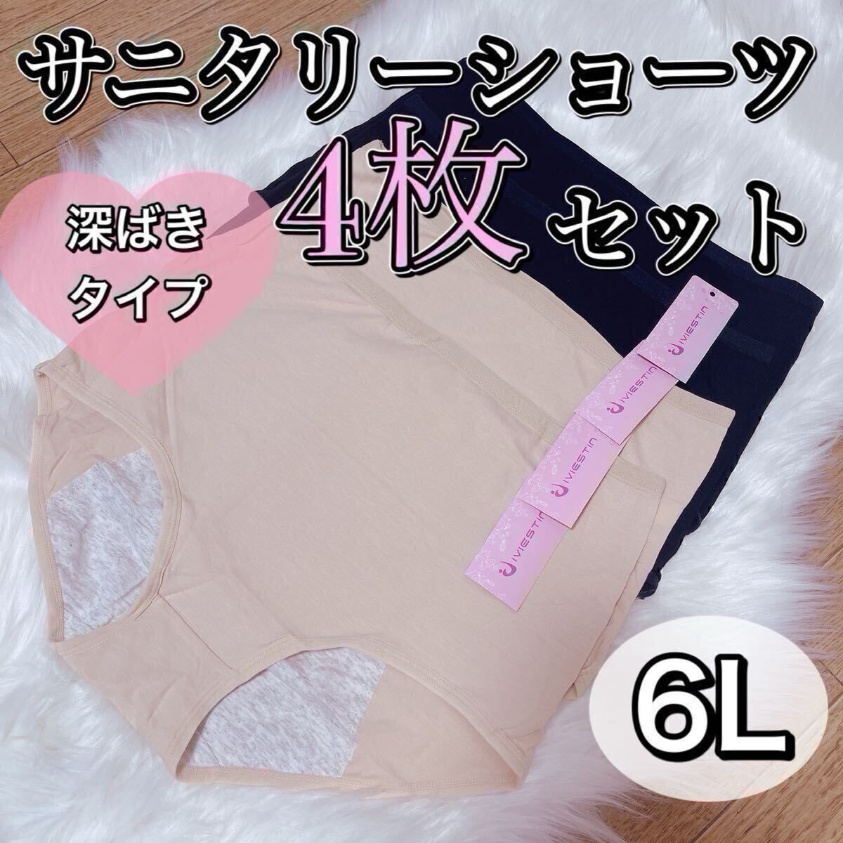 > サニタリー ショーツ 4枚セット ブラック 黒 生理用 6L 5XL 産褥 大きいサイズ 深ばき 下着 生理パンツ ベージュ 肌色 ハイウエスト