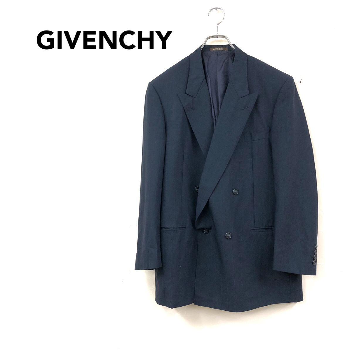 > 2H3175-Y◆GIVENCHY ジバンシー ダブルスーツ ジャケット ピークドラペル ノーベント 背抜き フォーマル ビジネス ◆size175 ネイビー 毛