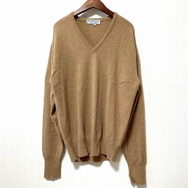 - #wnc バーバリー BURBERRY ニット・セーター 42 ベージュ ヴィンテージ Vネック スコットランド製 大きいサイズ レディース [945505]