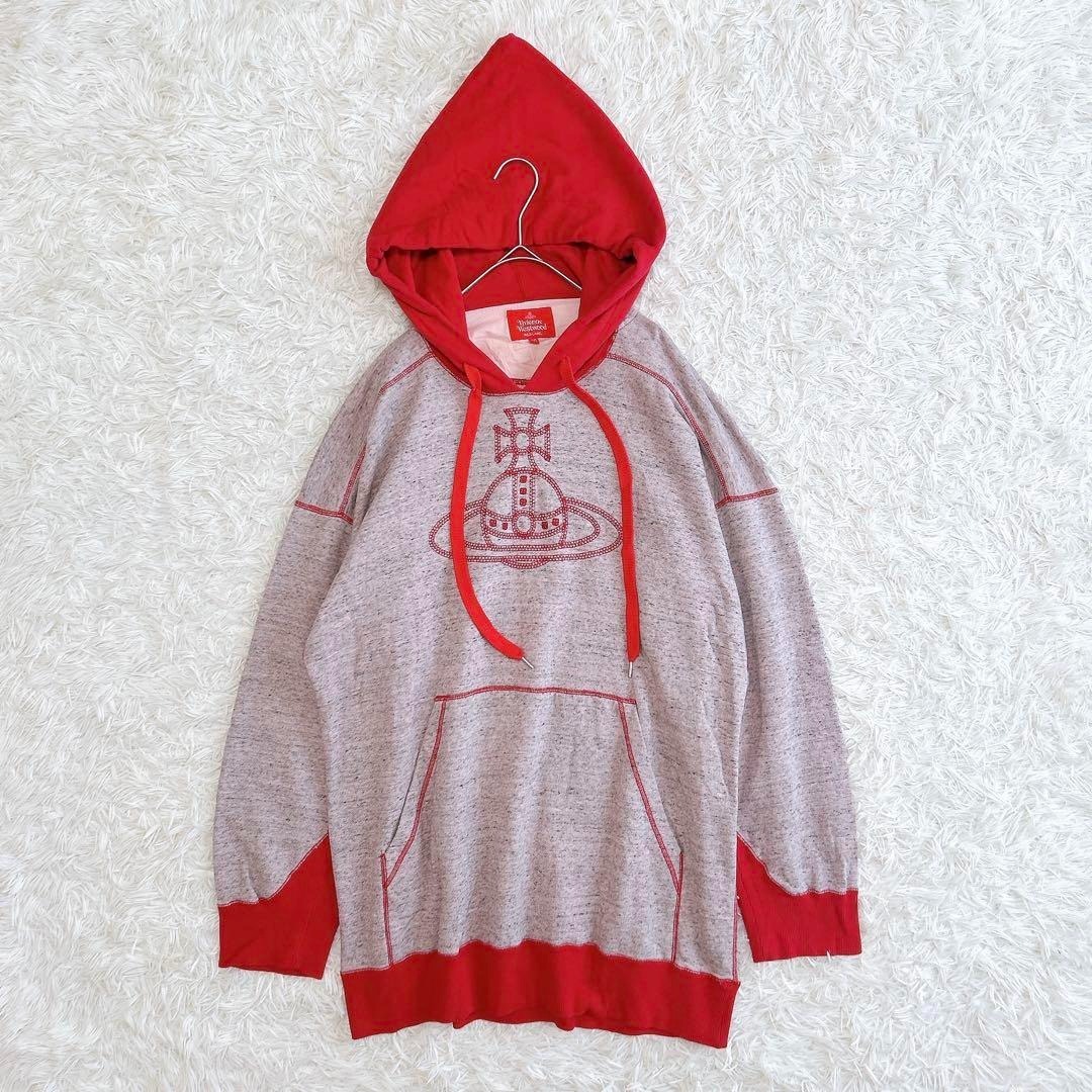 > 美品 Vivienne Westwood RED LABEL ヴィヴィアンウエストウッド オーブ刺繍 パーカーワンピース ビッグシルエット グレー レッド 赤