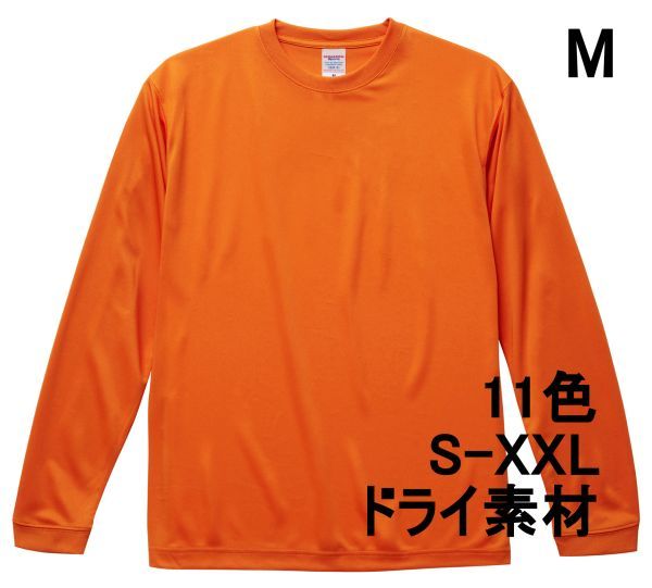 - 長袖 Tシャツ M オレンジ ドライ素材 吸水 速乾 無地 袖リブ ロンT ドライ 無地T 長袖Tシャツ A516 508901 5089 5089-01