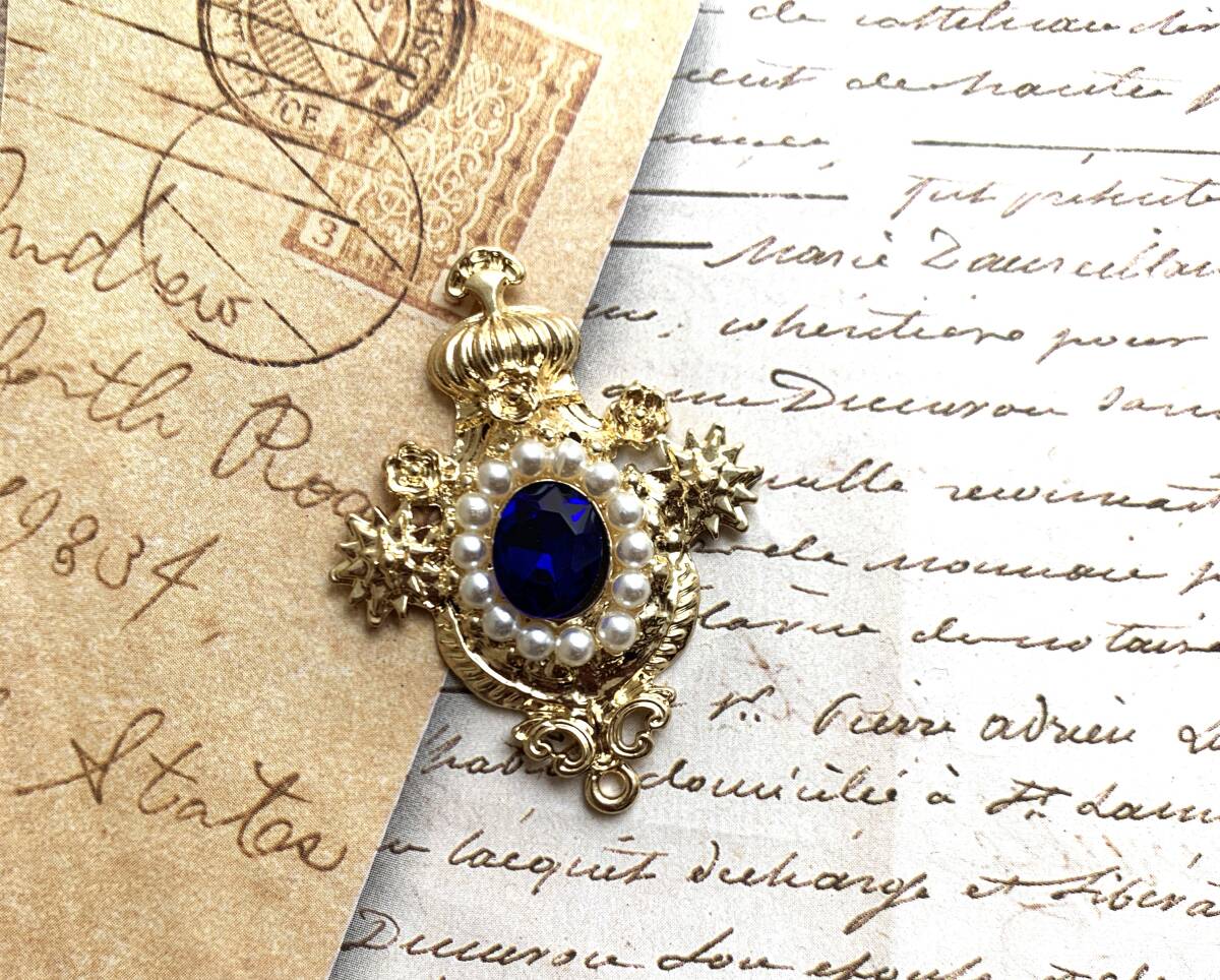 - 青 飾りパーツ ビジュー 1個 デコ チャーム アクセサリー ハンドメイド材料 紋章 A2