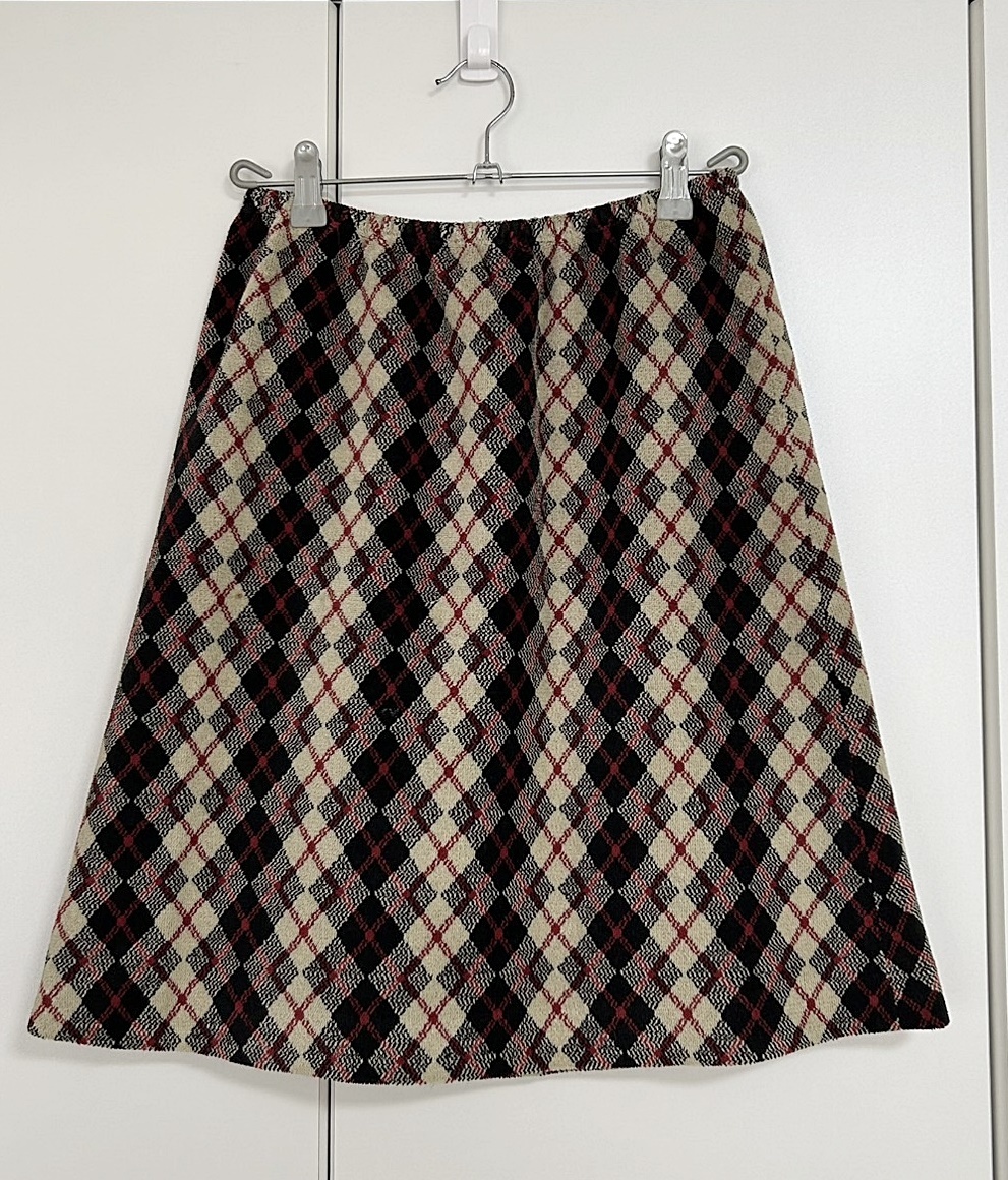 - 送料無料♪アニエスベー スカート アーガイル柄 ひざ丈 起毛 ウエストゴム Lサイズ