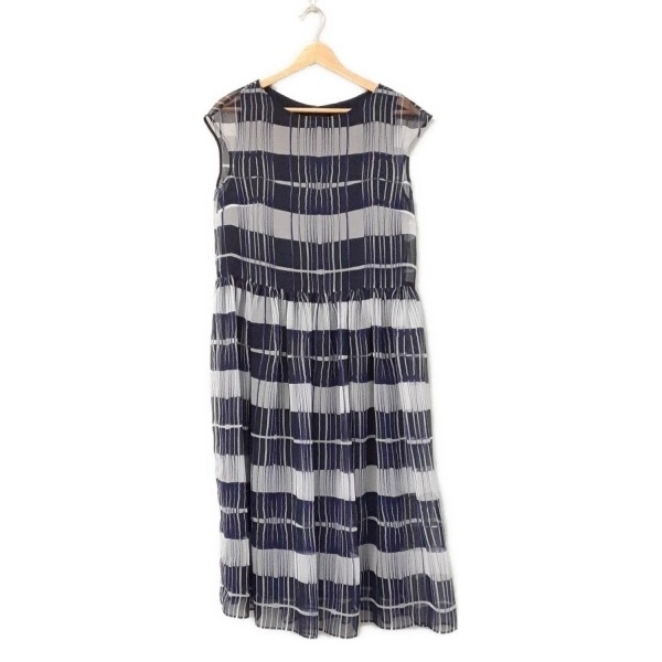 - アマカ AMACA サイズ40 M - ネイビー×白 レディース クルーネック/半袖/ロング/ストライプ 美品 ワンピース