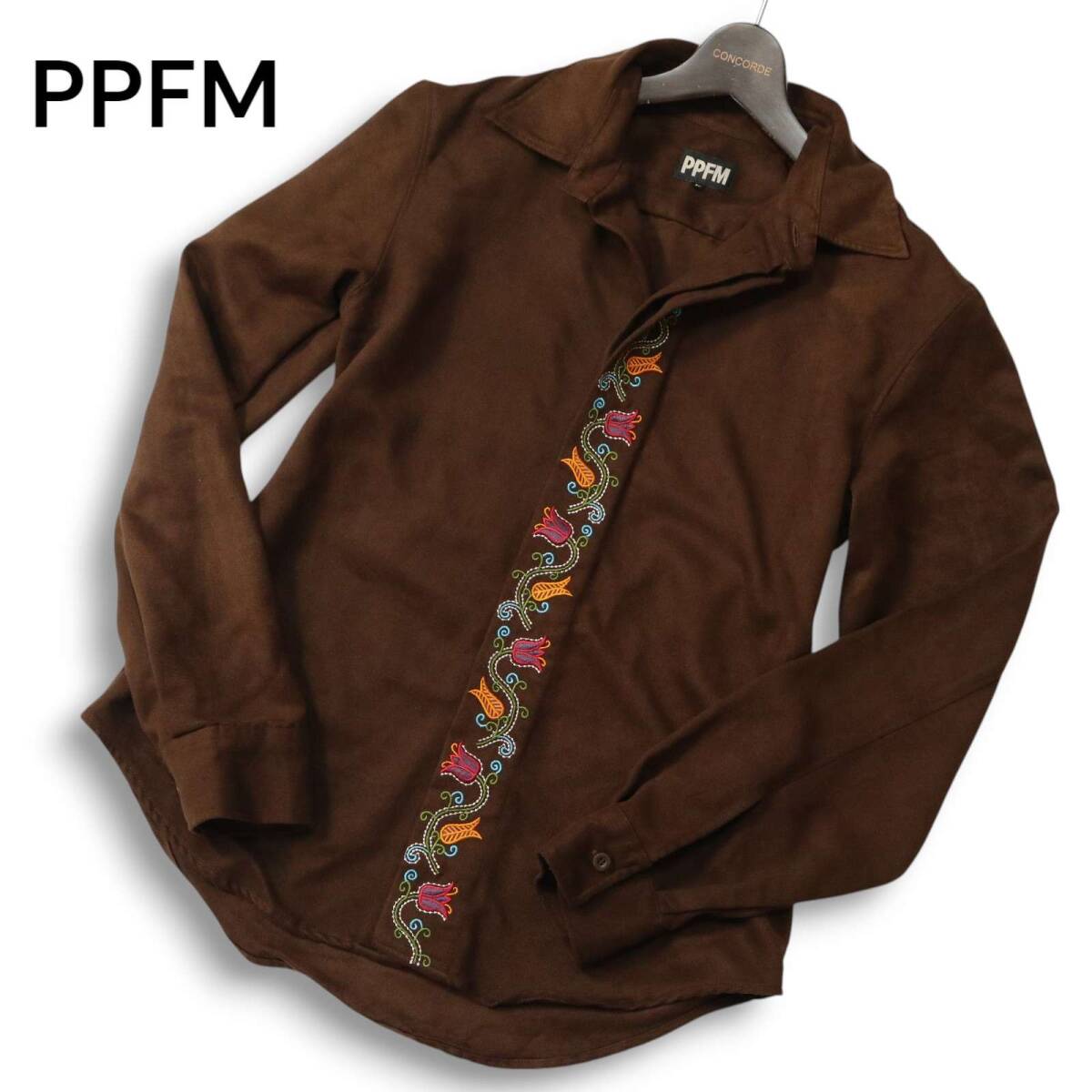 > 美品 90s★ PPFM ペイトンプレイス 秋冬 花 刺繍★ 長袖 フェイク スウェード シャツ Sz.F メンズ 古着