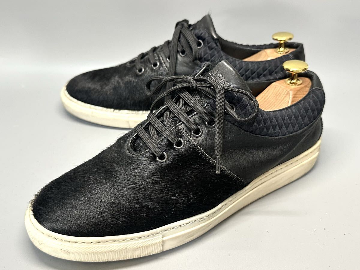 - 【即決】ARMANI COLLEZIONI 25cm メンズ アルマーニ コレッティオーニ ブラック 黒 レザー 革靴 本革 本皮 スニーカー ファー くつ