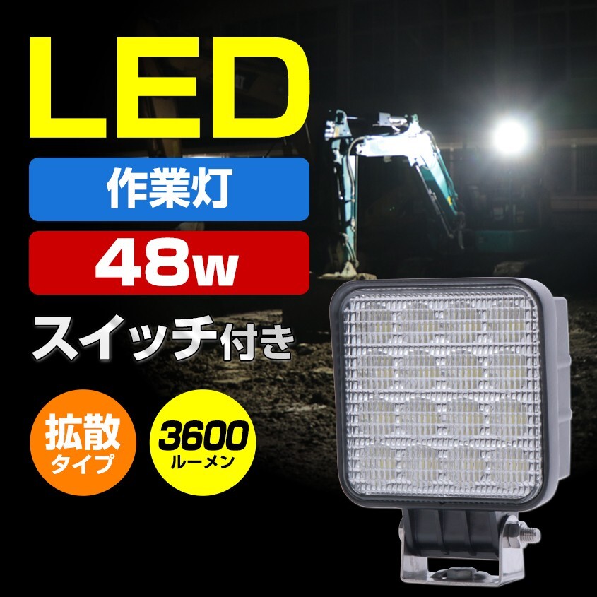 - 作業灯 LED 12v 24v 投光器 48w ノイズ対策 スイッチ 付き 防水 トラック タイヤ灯 バックランプ トラクター 積載車 ライト