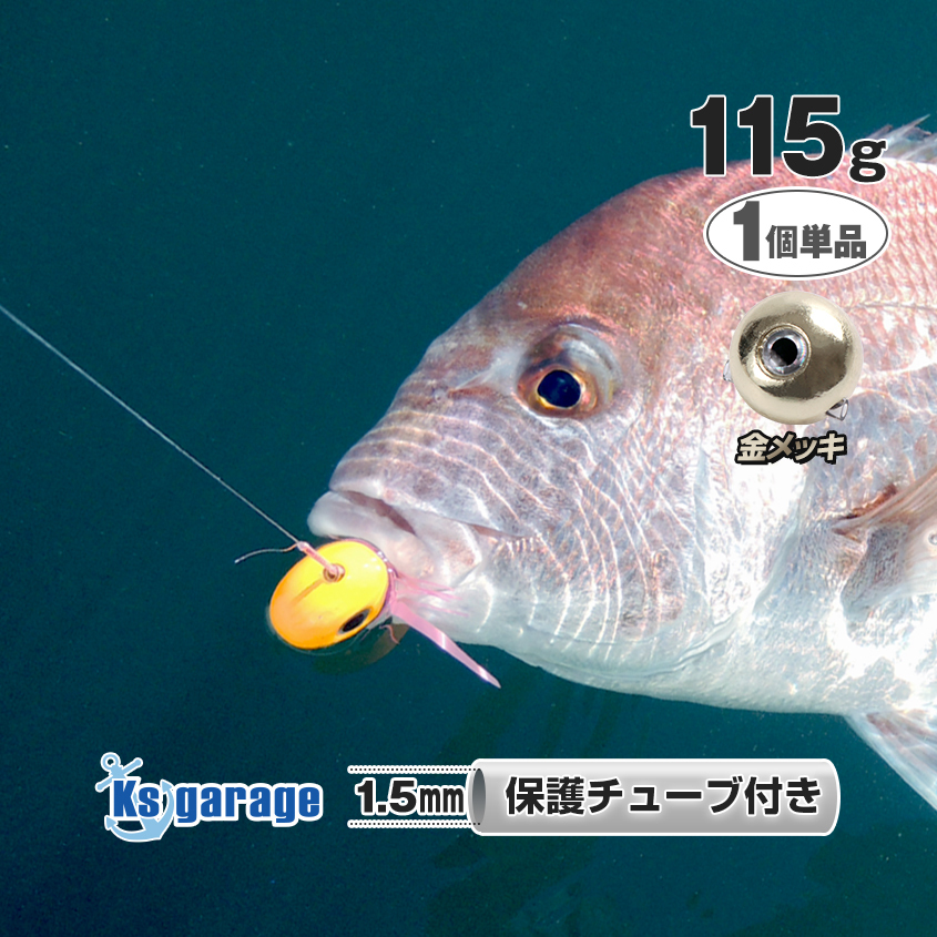 - タイラバ 仕掛け用 鯛ラバ ヘッド 115g 鉛 オモリ 遊動式 ゴールドメッキ 保護チューブ装着 アマダイ 根物