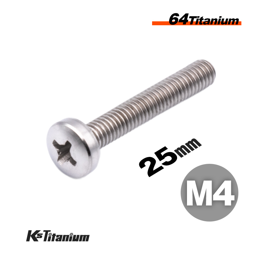 - チタンボルト M4×25 P0.7 チタン無垢色 1本売り 64チタン バインドヘッド なべネジ 全ネジ バイク インシュレーター エアクリーナーバンド