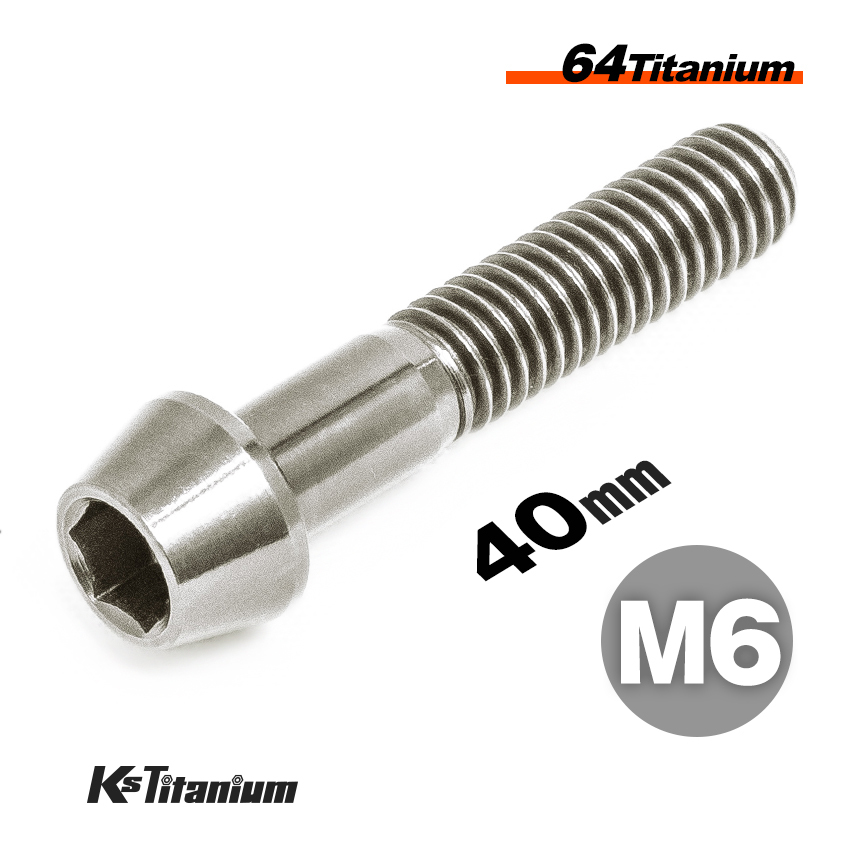 > チタンボルト M6×40 P1.0 チタン無垢色 1本売り 64チタン テーパーボルト スレッド 25mm バイク レストア パーツ