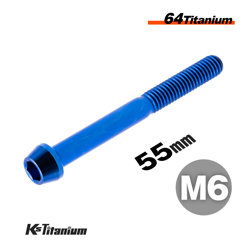- チタンボルト M6×55 P1.0 ブルー 1本売り 64チタン テーパーボルト スレッド 25mm バイク レストア パーツ