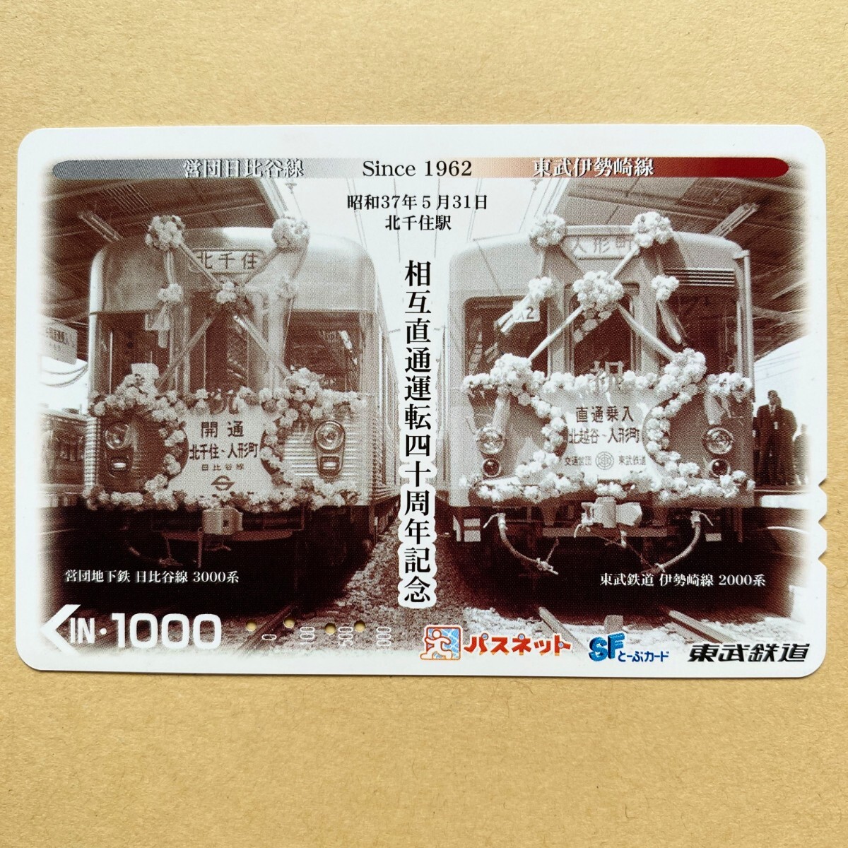 - 【使用済】 パスネット 東武鉄道 相互直通運転四十周年記念 営団日比谷線 東武伊勢崎線 昭和37年5月31日 北千住駅