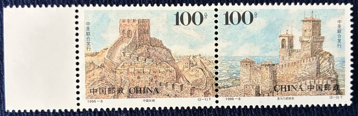 - 新中国切手ー未使用 1996年 1996-8T 古代建築 2種連刷完 耳付き