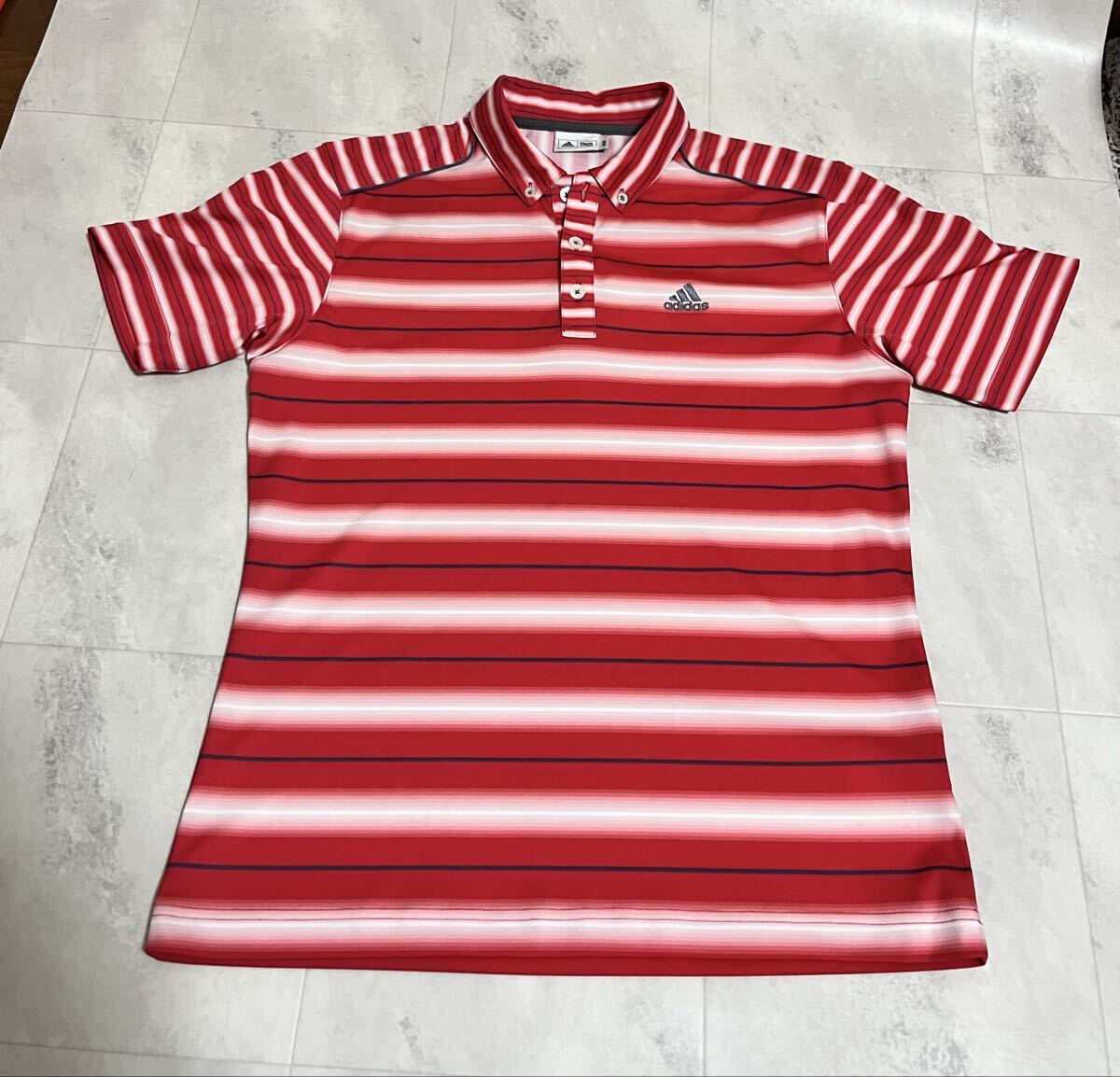 > 美品!adidas GOLF テーラーメイド ボーダーポロシャツ Mサイズ 半袖 ゴルフウェア