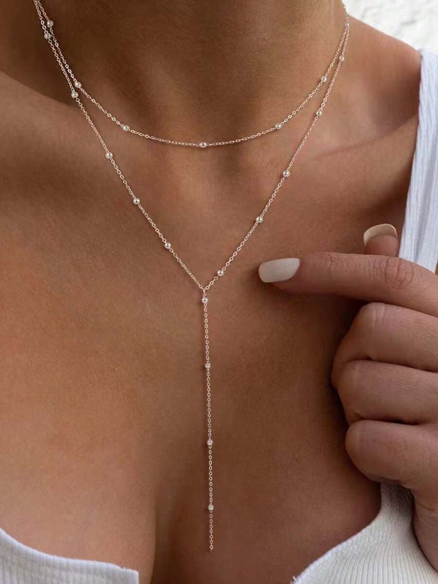 - ジュエリー レディース ネックレス チェーン シンプル シルバー ビーズ ネックレス、幾何学模様