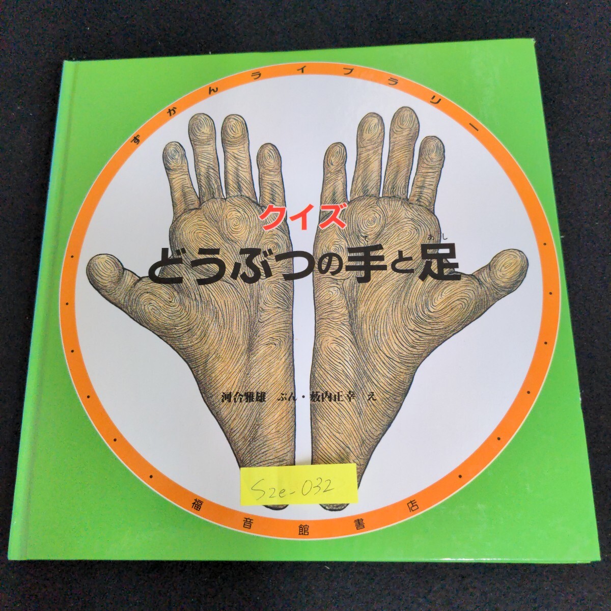 - S2e−032 ずかんライブラリー クイズ どうぶつの手と足 ぶん/河合雅雄 え/薮内正幸 1999年4月1日 特製版 福音館書店 るいじんえん